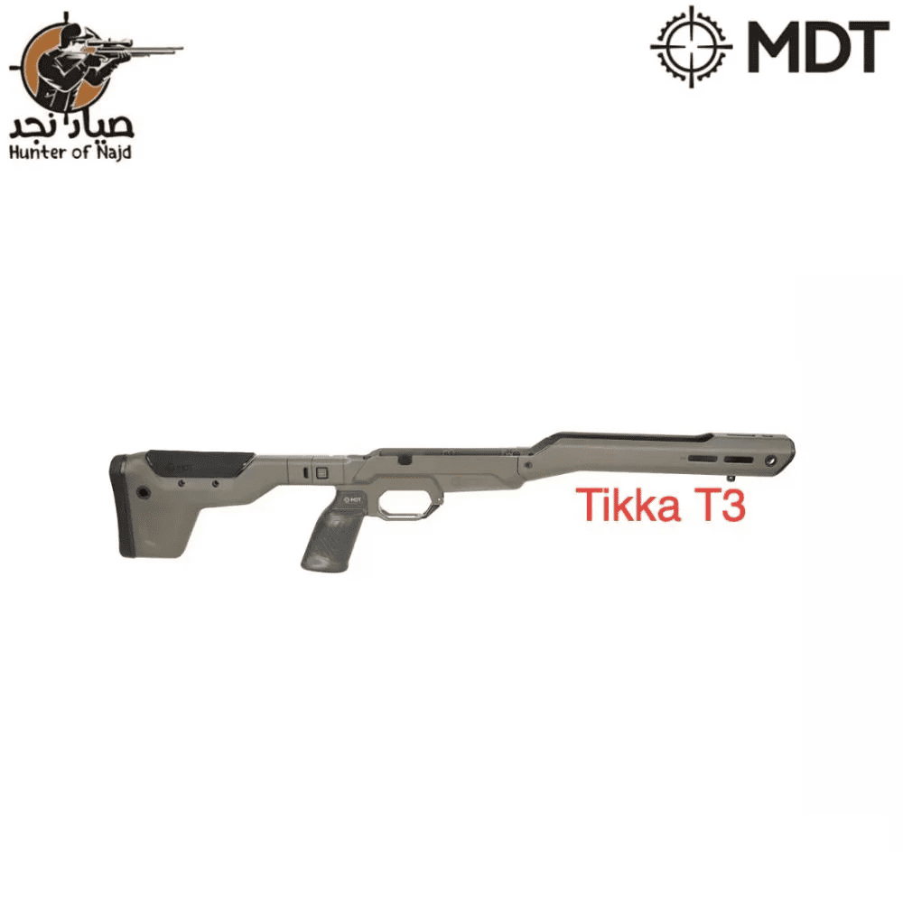 - النوع: شاصي قابل للطي مخصص لبندقية Tikka T3 – Short Action – استخدام باليد اليمنى